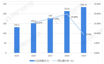 近年来,随着人们经济生活、文化消费水平的提高以及对口腔健康的认识,我国口腔器械市场规模呈现不断增长的趋势。2019年我国口腔器械市场规模达233.71亿元,较2018年的213.44亿元增长9.50%,2015-2019年复合增长率为15.53%。